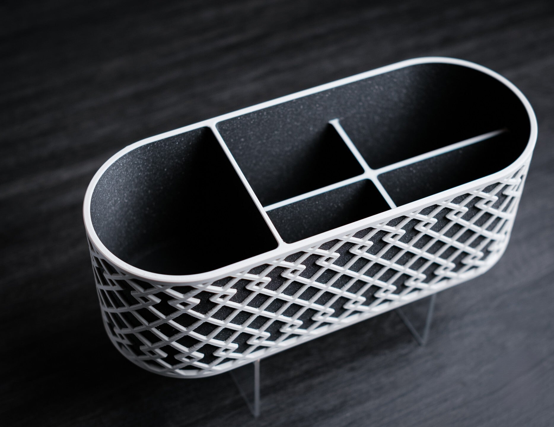 Bring minimalist sophistication to your desk with the Axora Organiser—a sculptural and functional piece designed for clean geometric beauty. Featuring elegant patterning, this organiser elevates both your workspace and your organisation game.