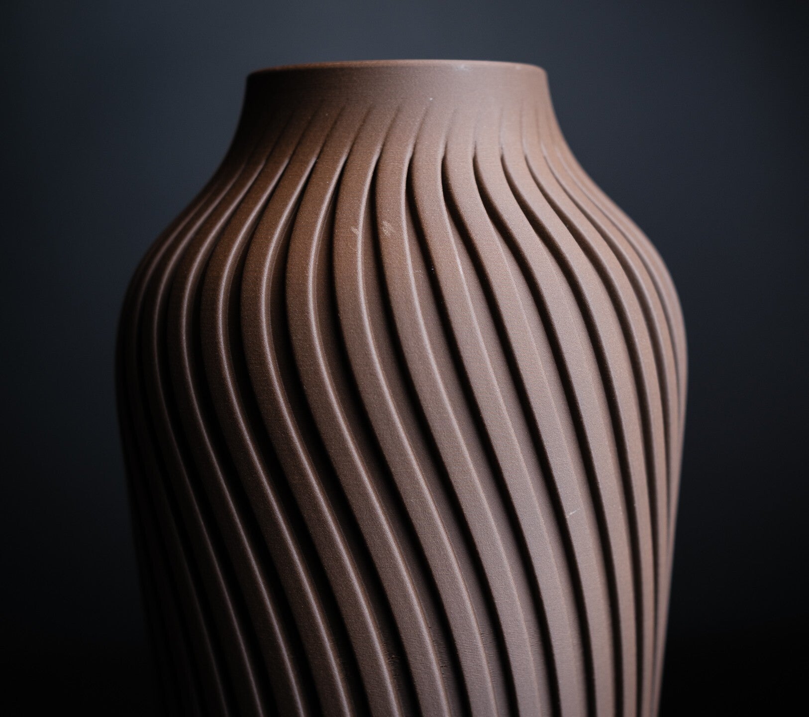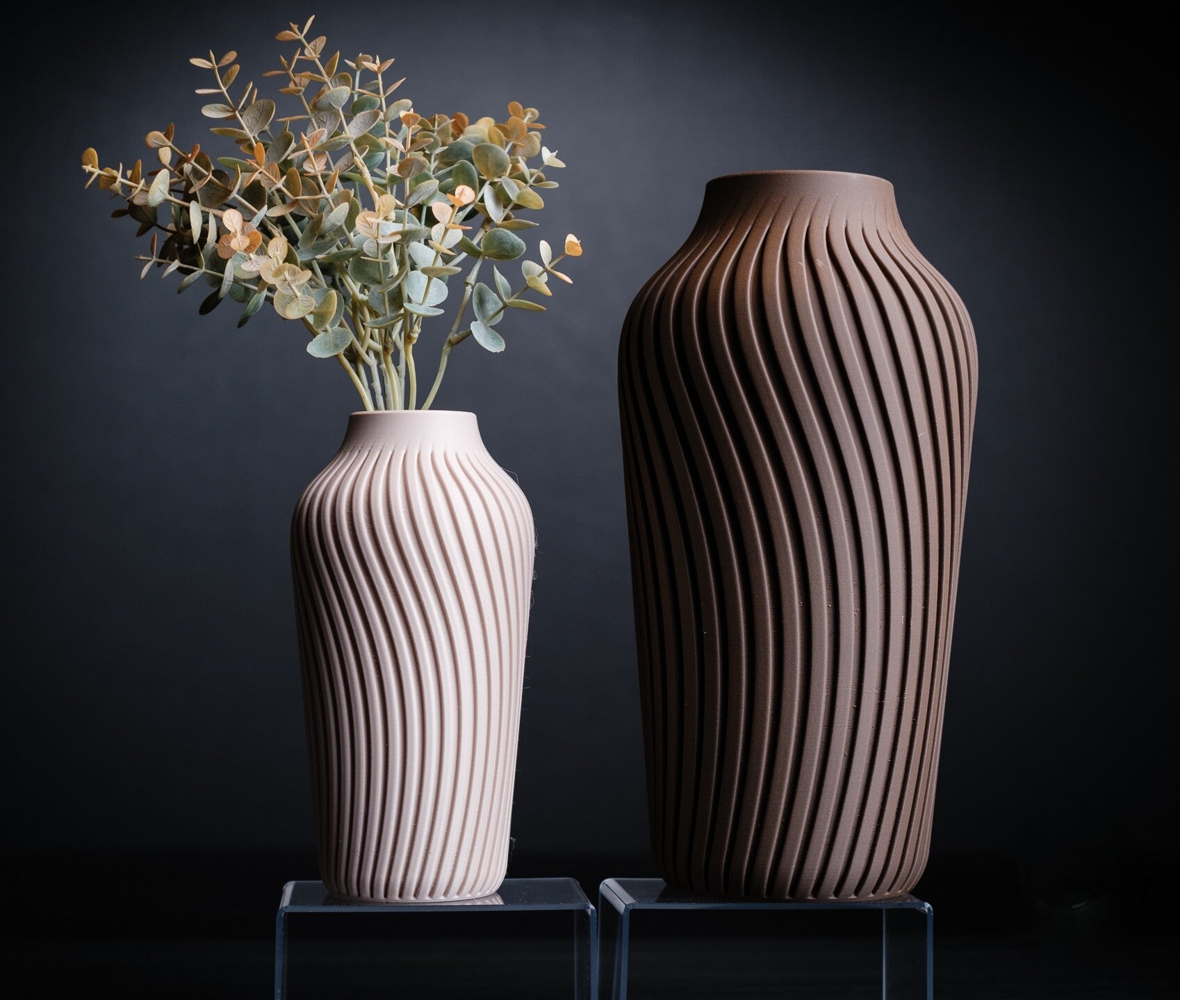 Elevate any space with the Radiate Vase, a modern minimalist design featuring elegant vertical wave contours. Available in two striking heights, this sculptural beauty commands attention—perfect for displaying florals or standing alone as an artful accent.
