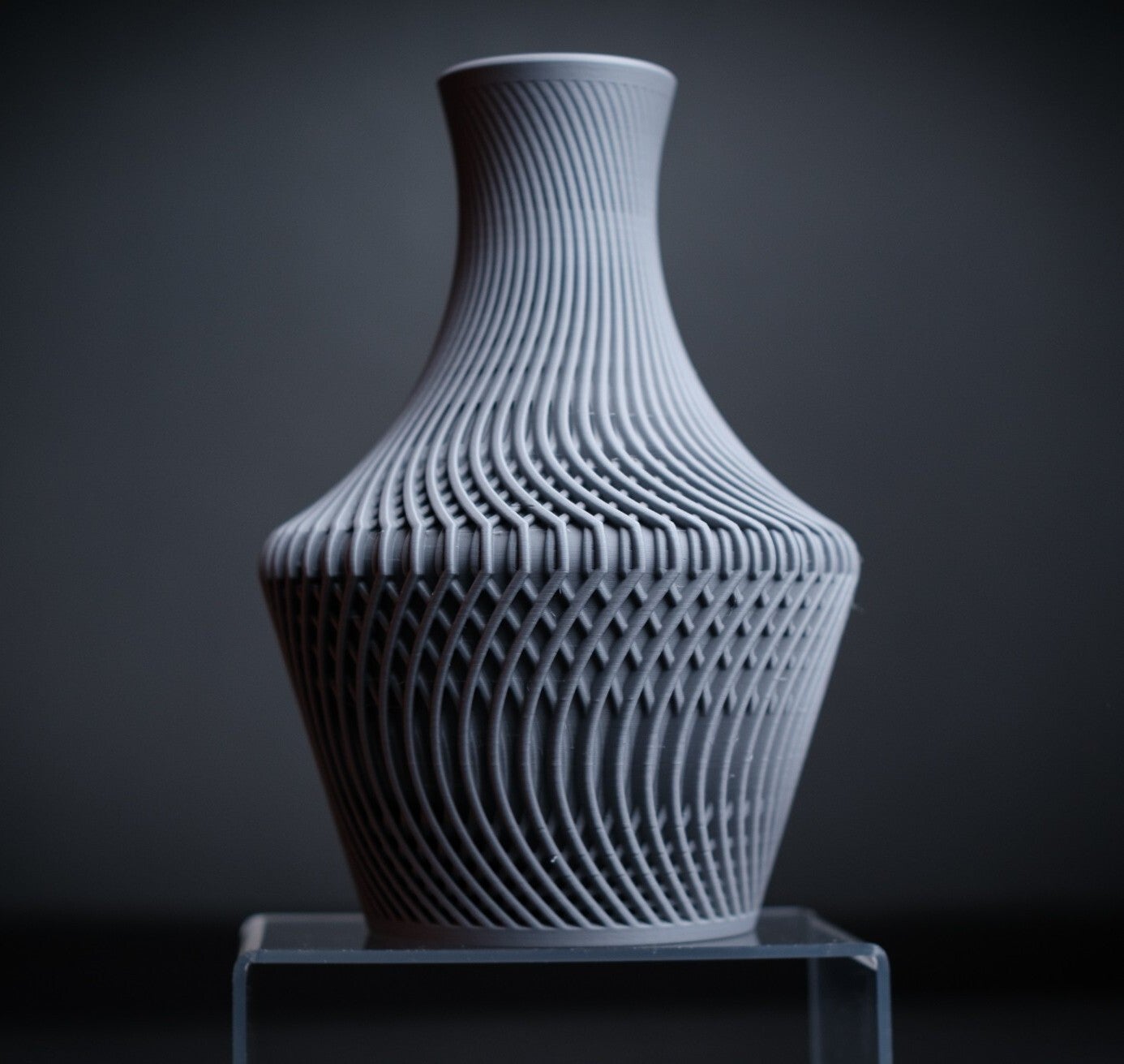 A modern, minimalist vase redefined by graceful rhythm and form. The lucid vase features elegant vertical and swirling ribbing that creates visual depth while maintaining a clean silhouette—an eye-catching statement for contemporary interiors.