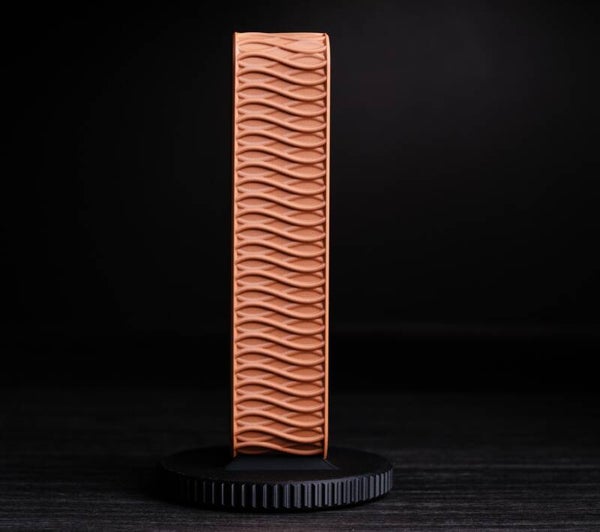 A modern minimalist headphone stand, presented with refined form and sophisticated function.