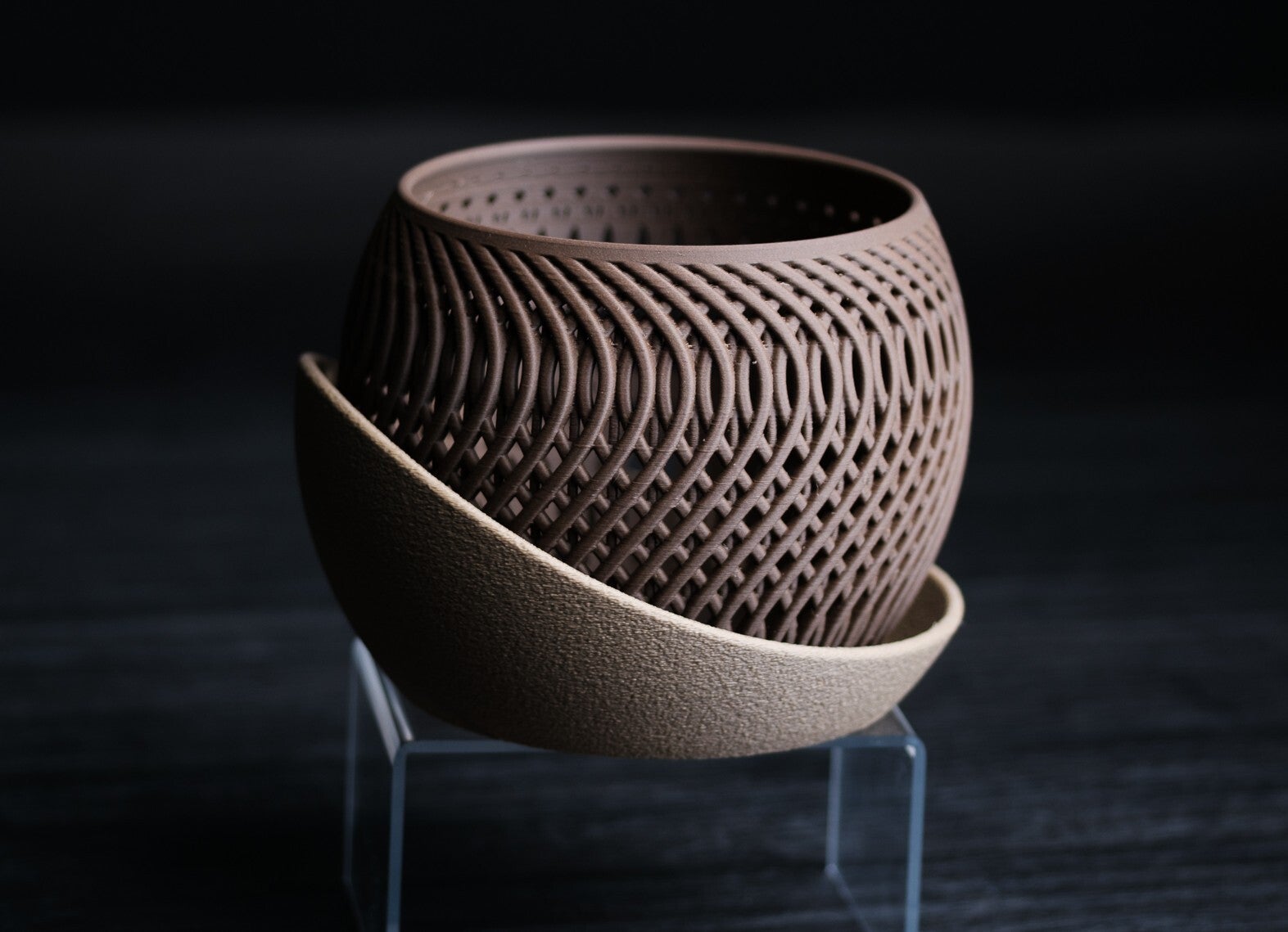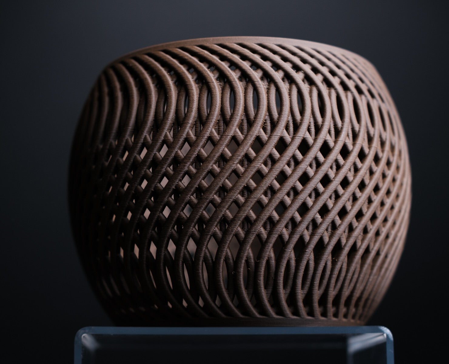 A modern, minimalist orchid planter optimised for airflow and visual elegance. Crafted with a flowing lattice pattern, this planter is elevated on a wrap-around drip plate, combining sculptural form with practical utility.