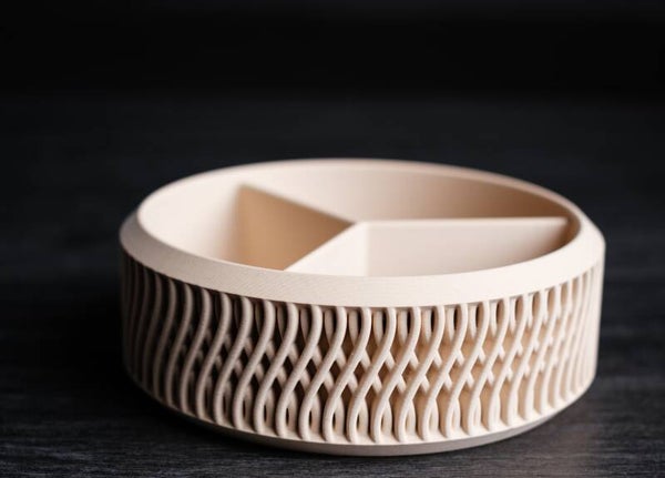 A modern minimalist catch-all crafted with dynamic form and thoughtful utility. This sculptural bowl features an intricate helical lattice exterior and is internally divided into three unique configurations—ideal for organising keys, coins, stationery, or desk essentials.