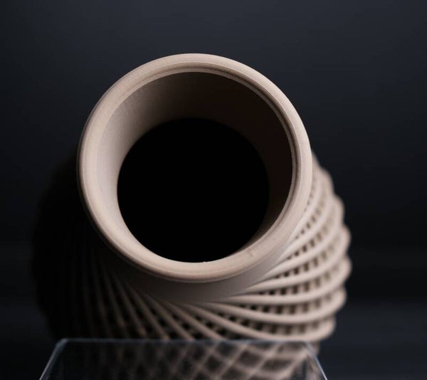 A sculptural statement in minimalist form. The influx · vase marries timeless geometry with soft, directional ribbing for a piece that’s as captivating as foliage placed within it.
