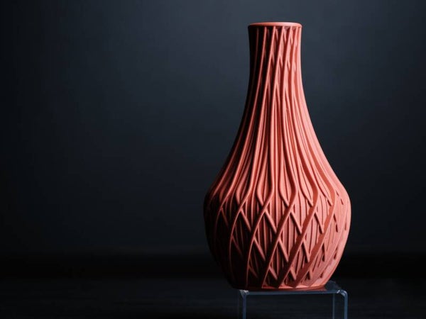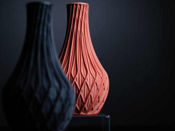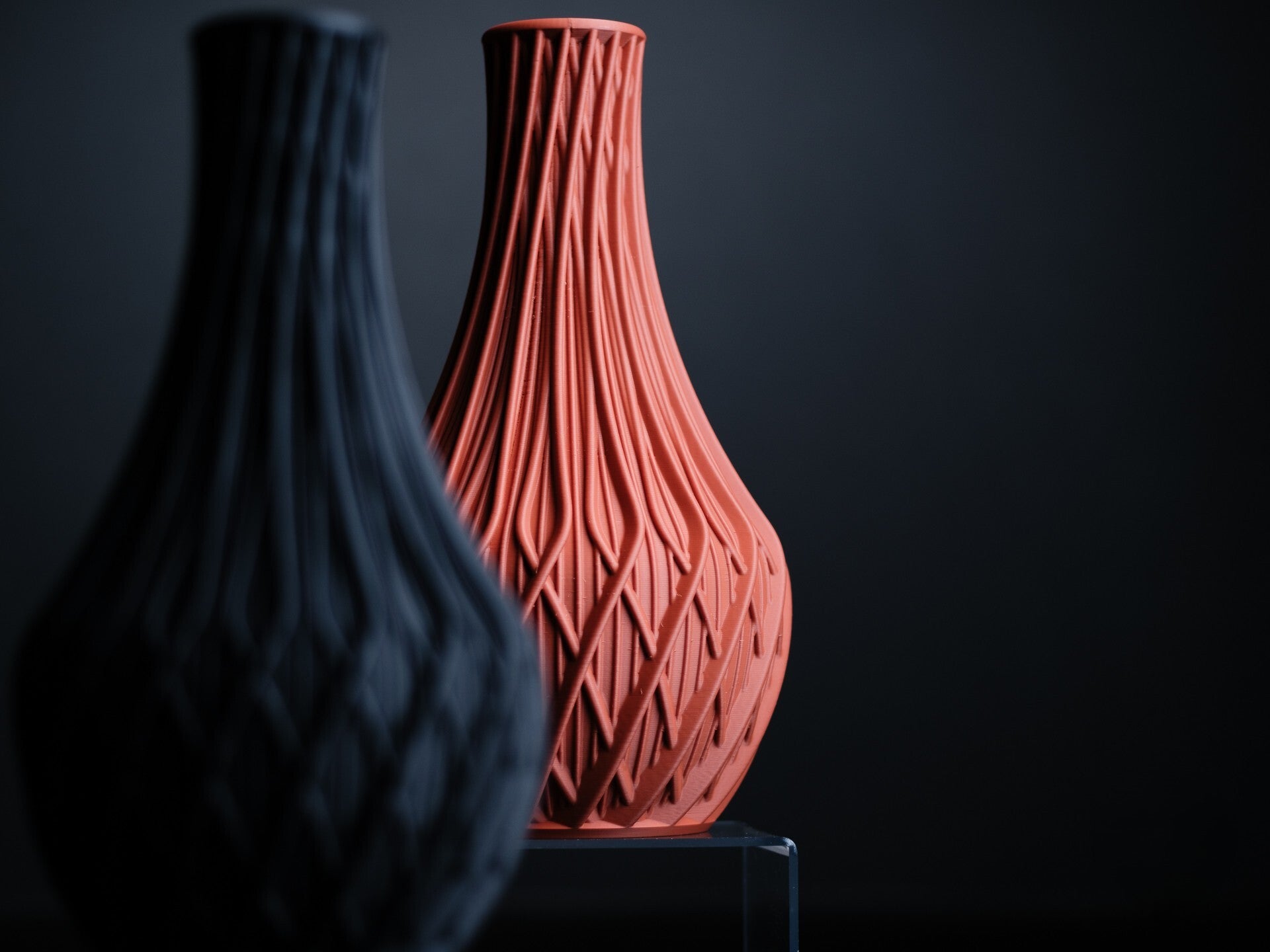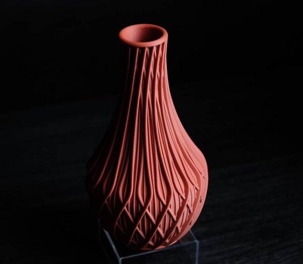 A modern minimalist vase defined by intricate fractal geometry. The fractal vase pairs sleek form with a dynamic patterned shell that gleams under shifting light.