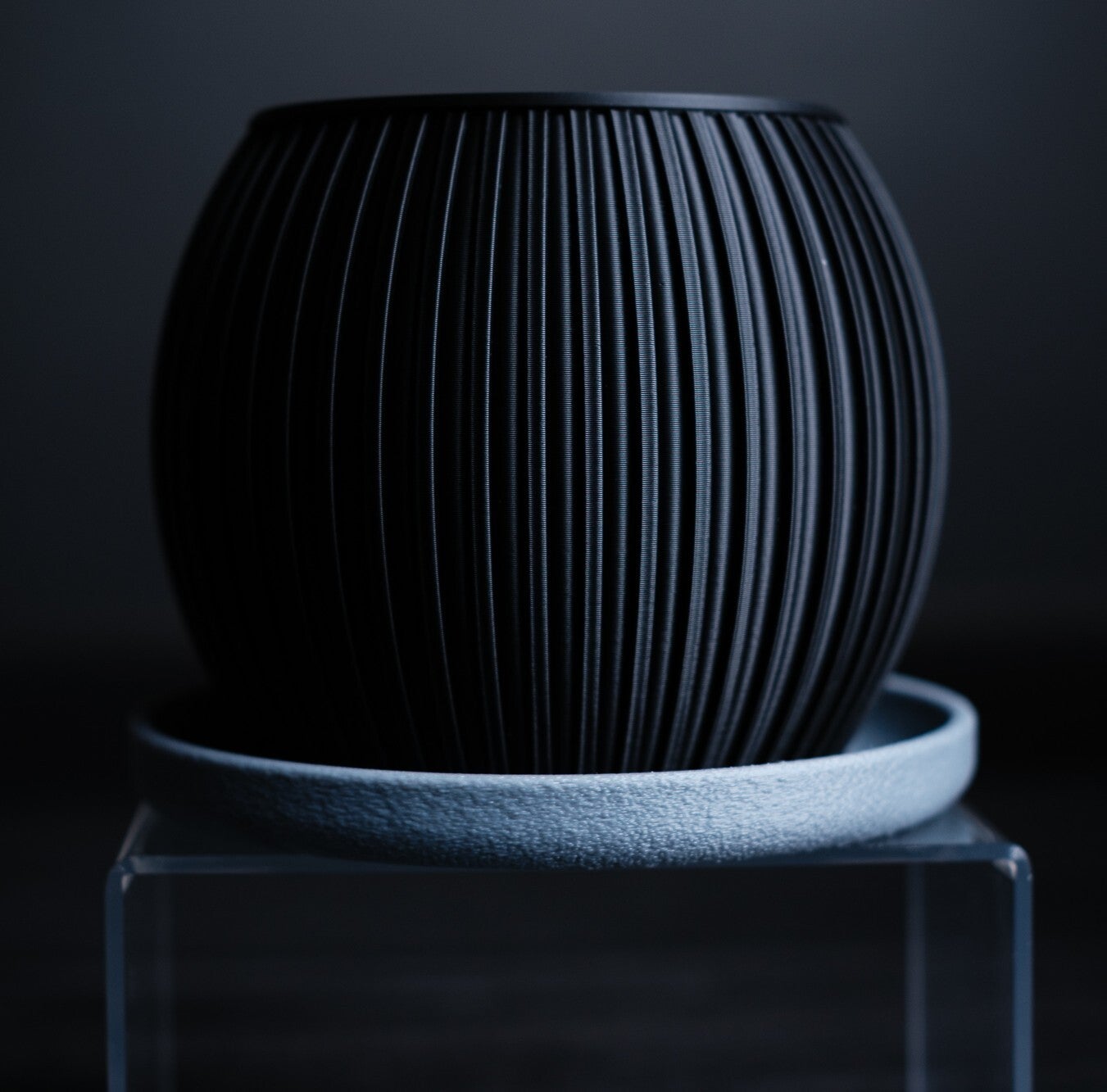 An elegant fusion of minimalism and texture. The halo planter showcases a refined ribbed surface that rests gracefully on a discreet drip plate—blending contemporary design with subtle functionality.