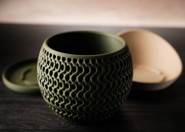 Where pattern meets elevation. The echo planter is a modern minimalist pot characterised by its sculptural wave-patterned shell. It elegantly floats above a base tray, available in either a wrap-around or traditional style, offering both visual appeal and functional elegance.