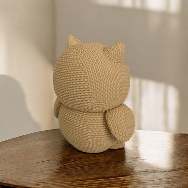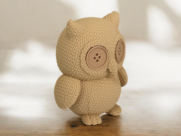 A miniature knitted-style owl brimming with charm. This sweet model captures the texture and warmth of handmade knits in sleek 3D form — ideal for desks, shelves, or gifting.
