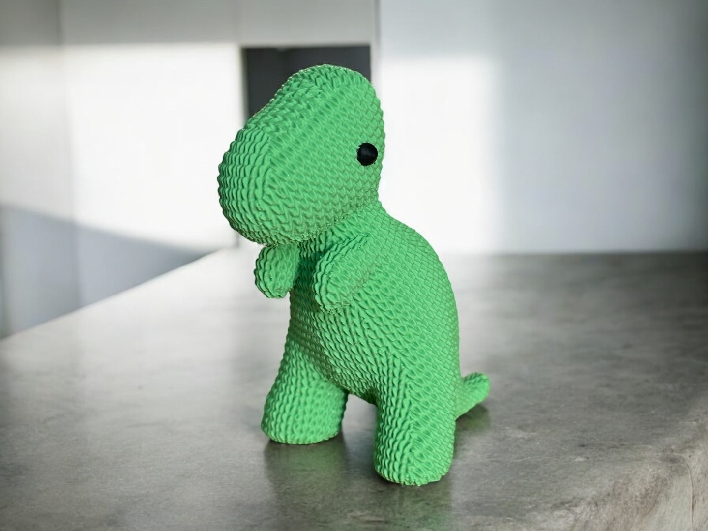 A whimsical knitted-style mini that packs prehistoric personality. This charming T-Rex model transforms knit-inspired texture into a finely detailed 3D shape—perfect for playful décor, thoughtful gifts, or collectors of cute and quirky design.