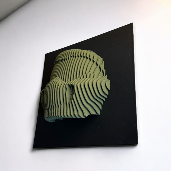 Bring the grim determination of the Doom Slayer to your walls with this striking layered sculpture. Designed to capture dramatic depth and bold detail, it makes a powerful statement for gamers, fans of the series, or anyone who loves standout pop-culture décor.