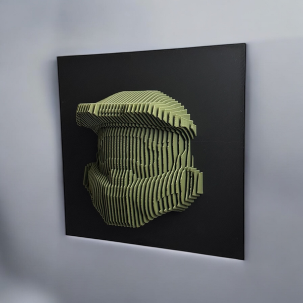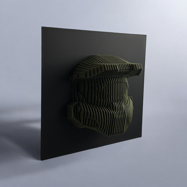 This layered sculpture recreates the iconic Master Chief helmet from Halo in a visually striking 3D layered format. Ideal for gaming rooms, display walls, or fan collections, it brings a cool, textured depth to a corner of your space.