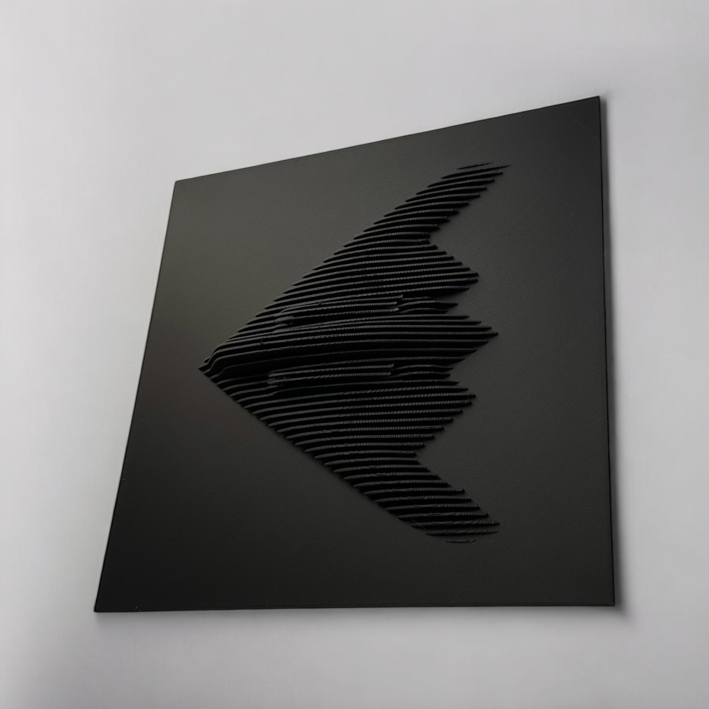 Capture the legendary stealth and elegance of the B-2 Spirit with this sculptural layered wall art. Its multi-layer design adds striking depth and dimension, making it a standout piece for aviation enthusiasts, themed décor, or gallery-style displays.