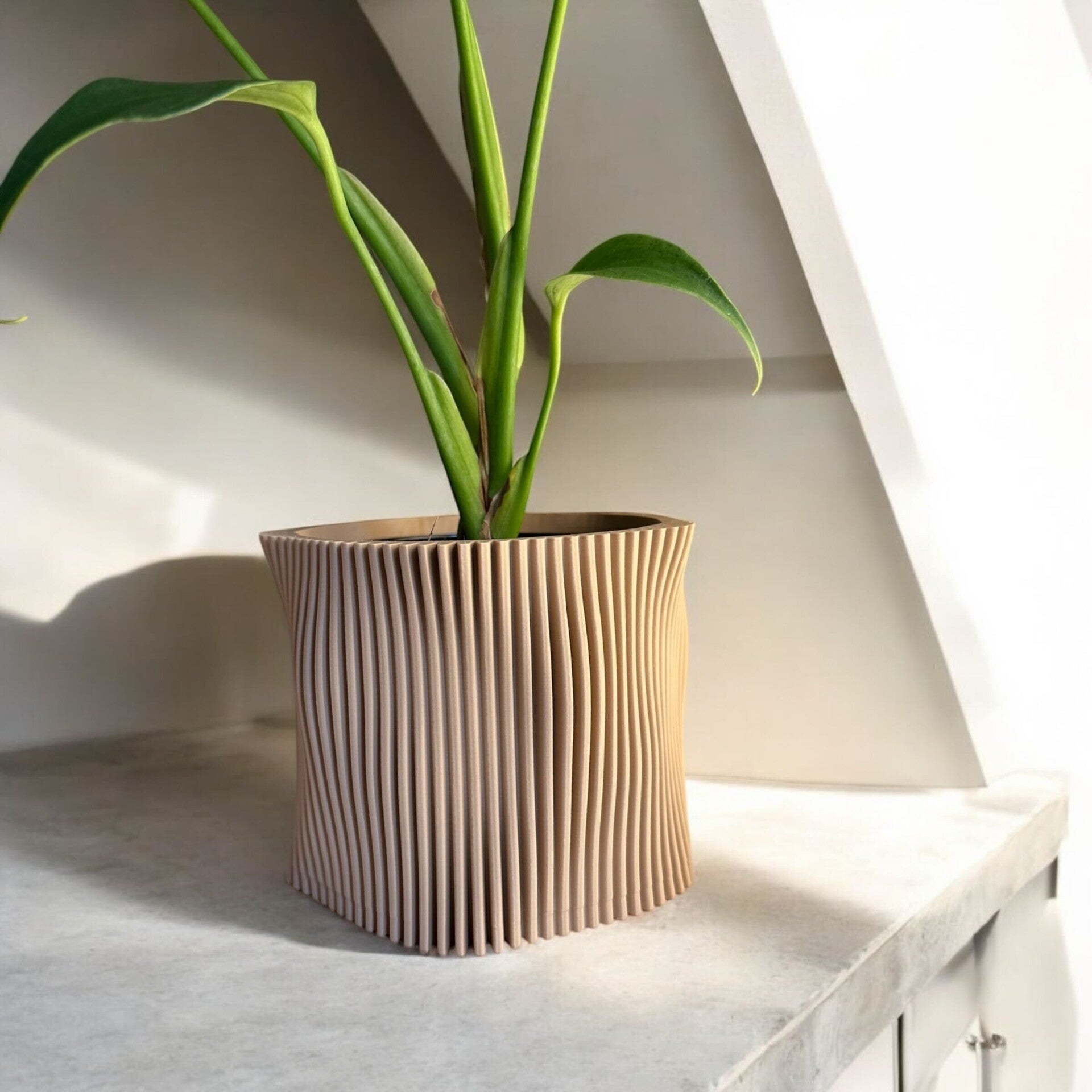 A modern and minimalist planter with clean lines, perfect for subtly showcasing your favourite plants on desktops or shelves.