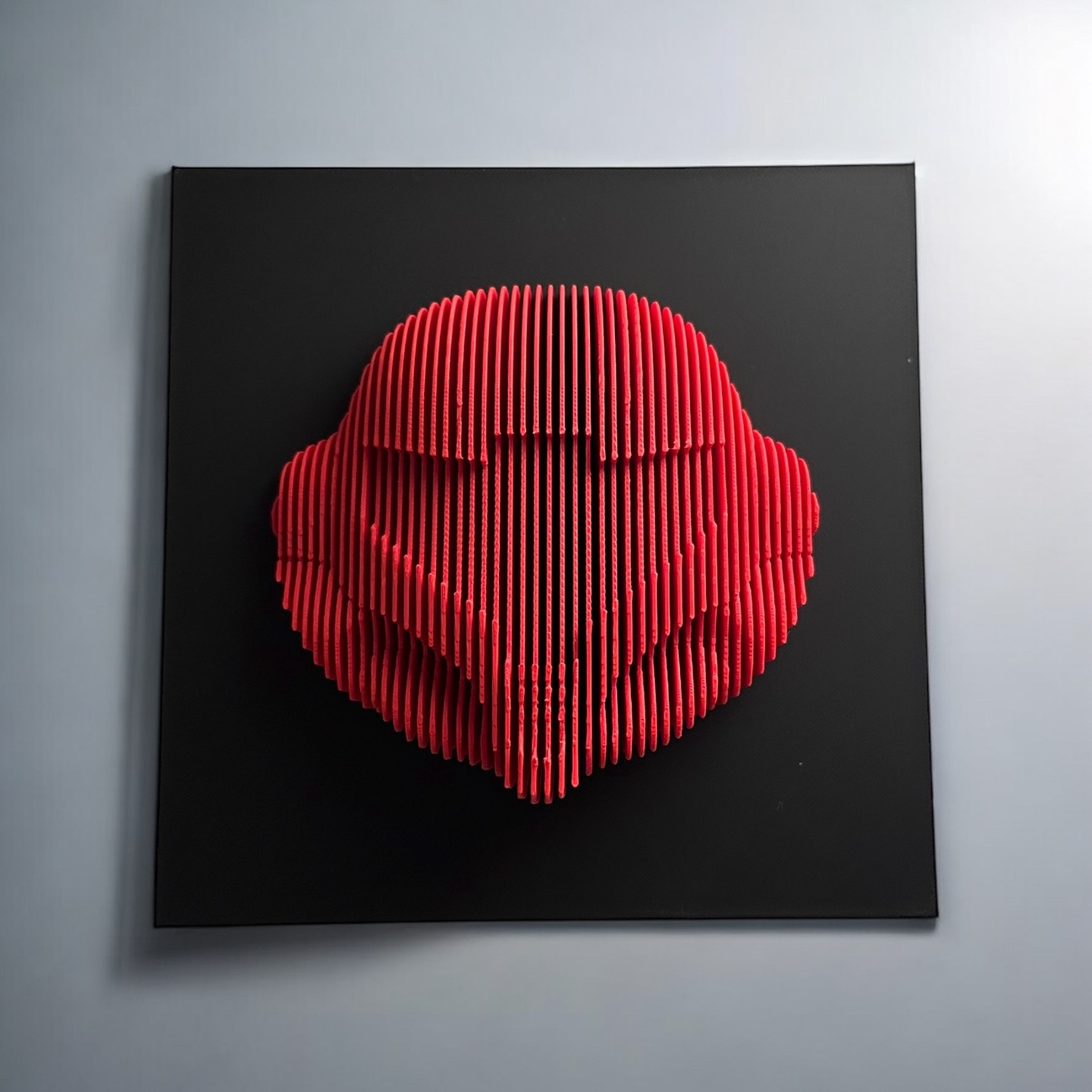 A bold layered wall piece showcasing Samus Aran’s legendary helmet. With clean depth and sharp contrast, this sculpture is ideal for fans of the Metroid series or anyone after a striking sci-fi décor piece.