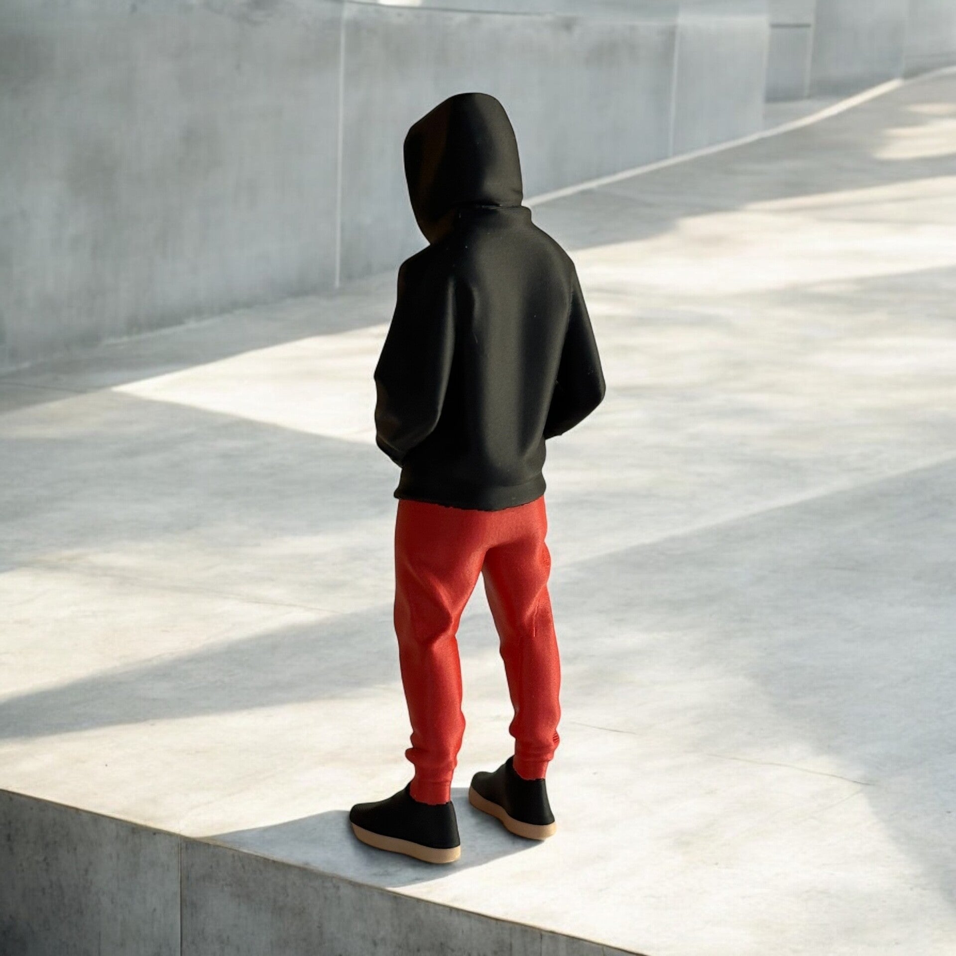 A fun, street-style spin on Deadpool dressed in an urban hoodie.