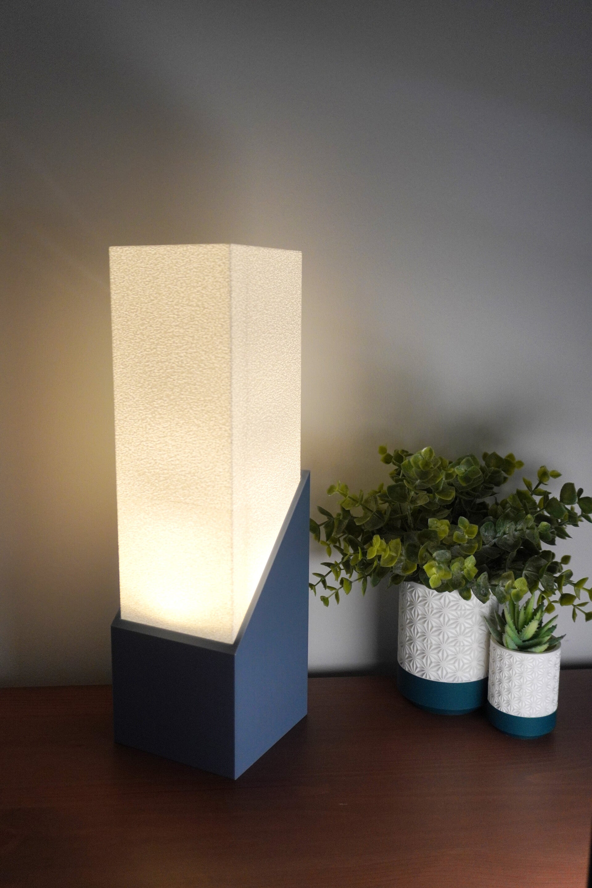 - Minimal silhouette suited to desks, bedsides, and shelves