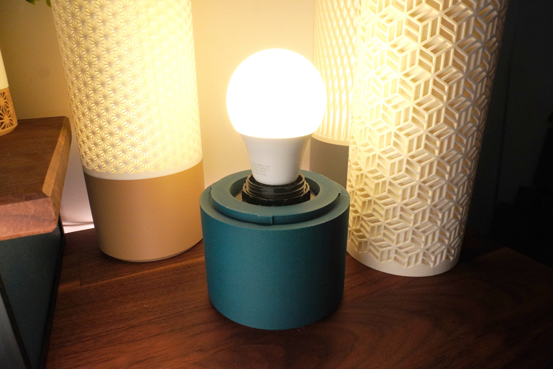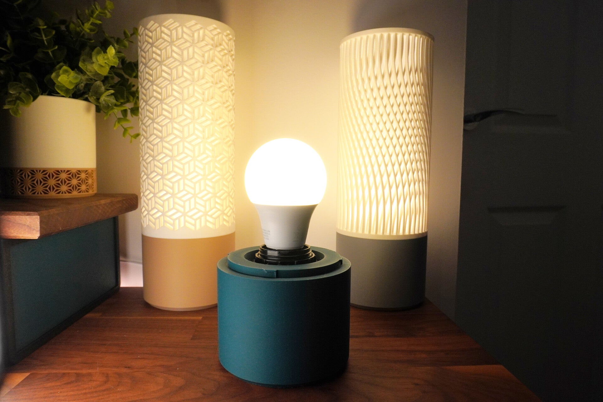 A compact lamp base designed for E27 lamp kits. The clean, modern form keeps your bedside or desk tidy while securely holding the lamp hardware—great for custom builds and cosy ambient lighting.