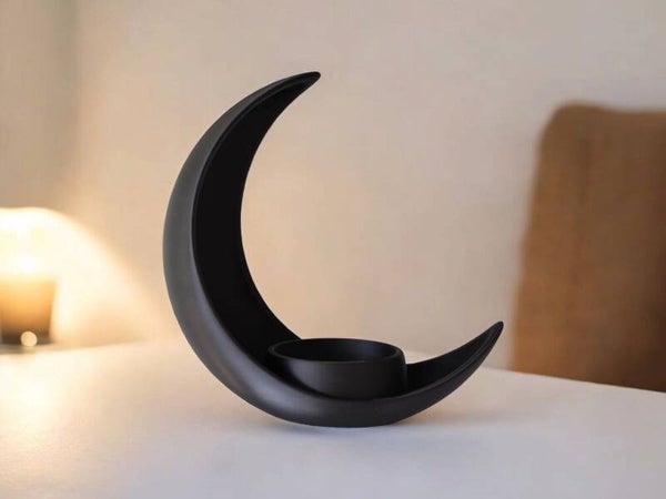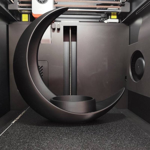 Elevate your interior with this sleek and sculptural 3D‑printed feature—a crescent moon that gracefully cradles an elliptical plant pot, blending function and artistry for a refined display.