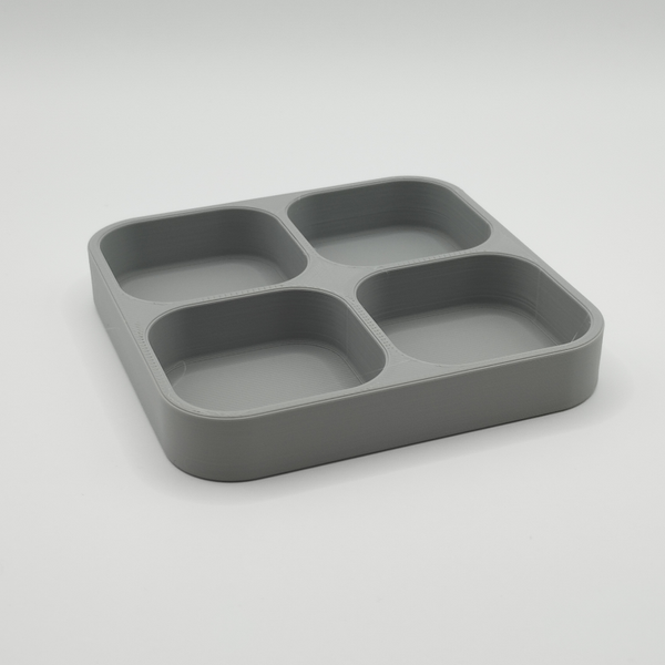 Bring an air of refined organisation to your everyday spaces with this modern, minimalist tray featuring four evenly sized compartments. Its clean, geometric division offers practical elegance—ideal for entryways, desks, or bedside tables—perfect for sorting keys, coins, jewellery, or small accessories in neat harmon