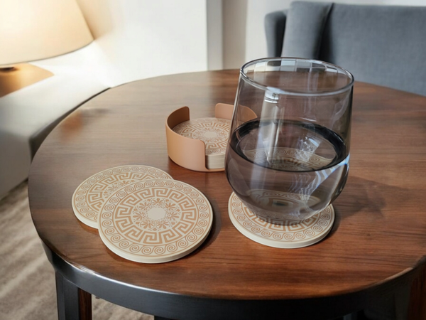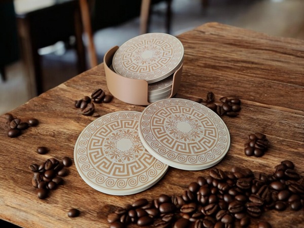 Elevate your table setting with this refined Greek-design coaster set—featuring classic, minimalist patterns inspired by traditional Greek motifs. Beautifully merging form and function, these coasters protect surfaces while adding an air of artistic elegance to every drink.