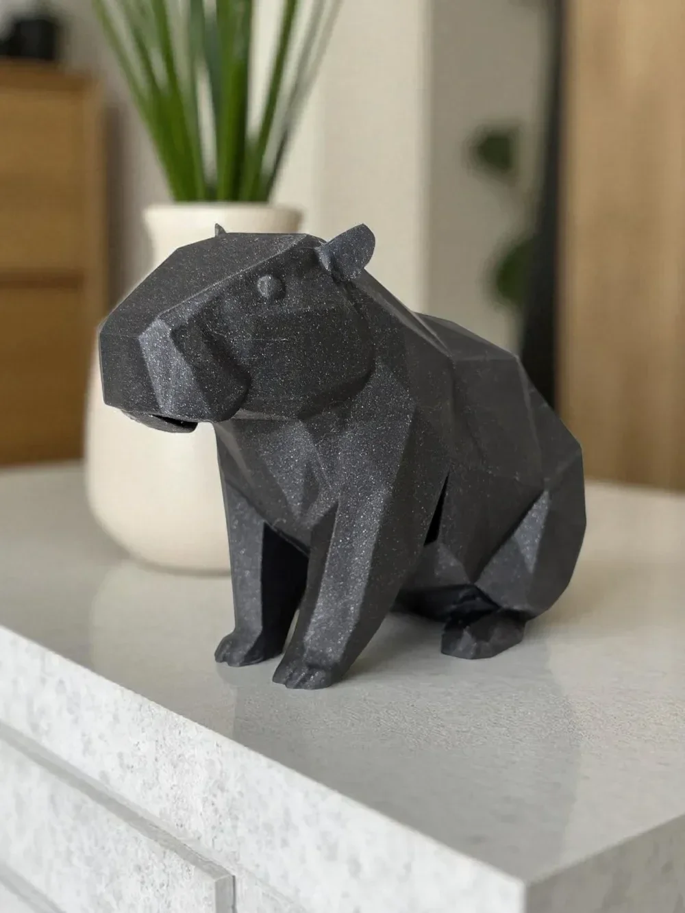 Elevate your space with this charming low-poly Capybara figure—a serene and sculptural piece that captures the gentle posture of this beloved rodent in simplified, geometric form. Perfect as a desk companion, shelf accent, or thoughtful gift, its minimalist style brings both warmth and modern artistry to any room.