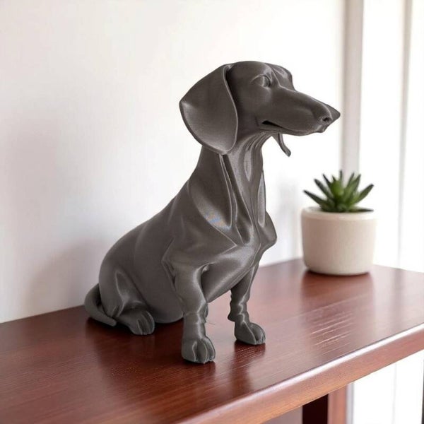 Elevate your décor with this charming minimalist dachshund—a sleek, low‑poly sculpture that captures the iconic silhouette of this beloved breed with modern elegance. Its clean lines and sculptural presence make it an ideal accent for desks, shelves, or mantelpieces, bringing whimsical character and refined style to any space.