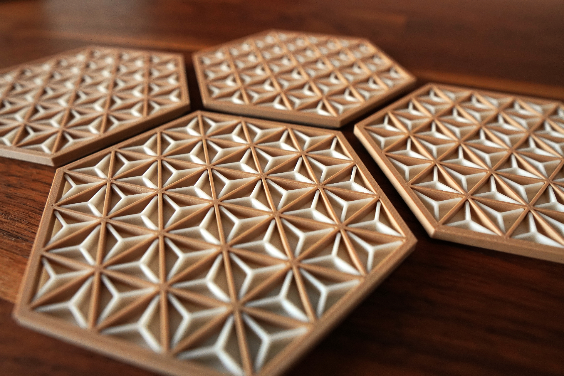 A kumiko-inspired coaster that brings crafted, geometric detail to your table. It protects surfaces from heat and moisture while adding a clean, modern accent to living rooms, kitchens, or workspaces.