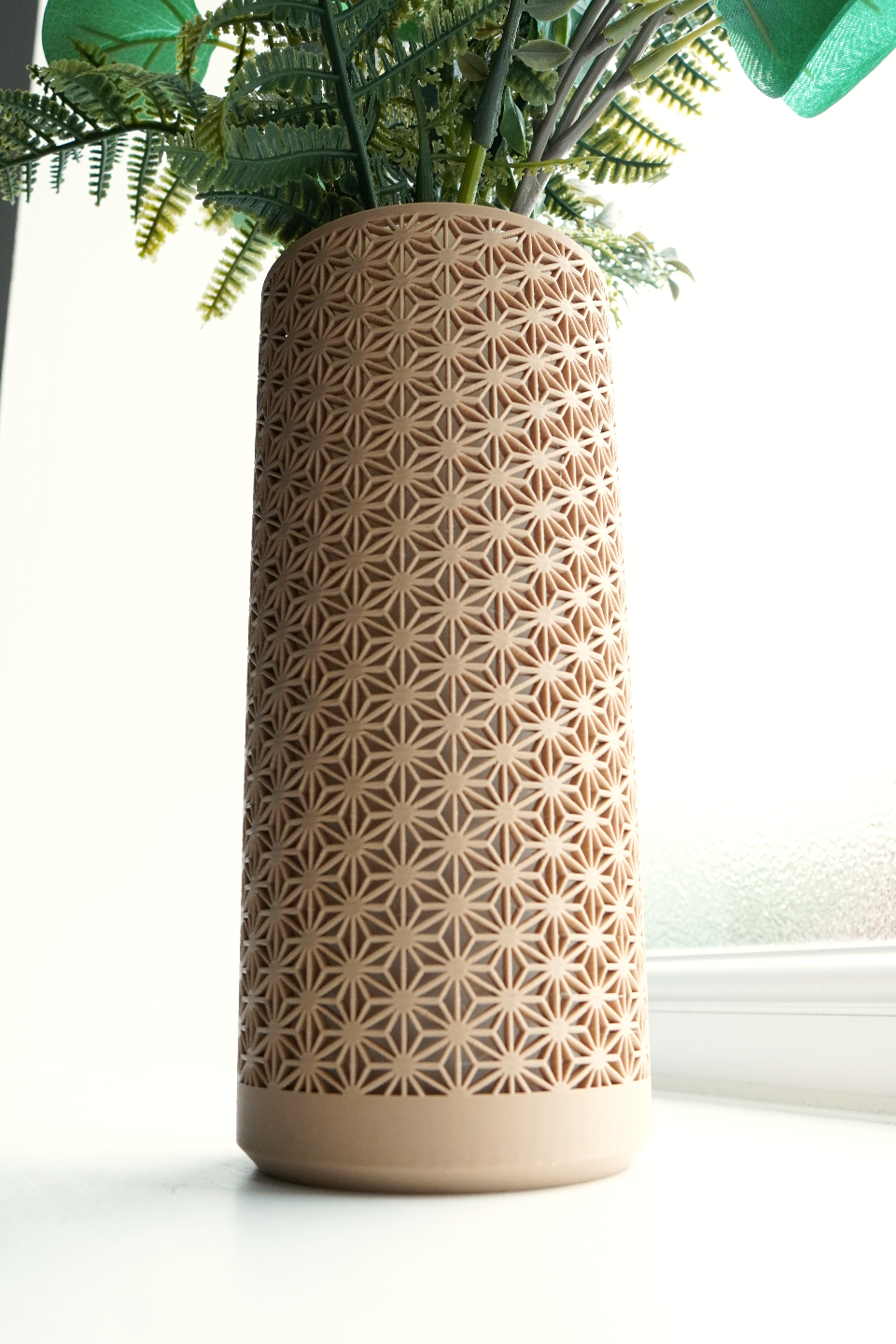 A kumiko-inspired vase that brings crafted, geometric detail to shelves and consoles. The open lattice adds sculptural interest from every angle, while the clean silhouette suits modern, minimal interiors—perfect for dried or faux florals.