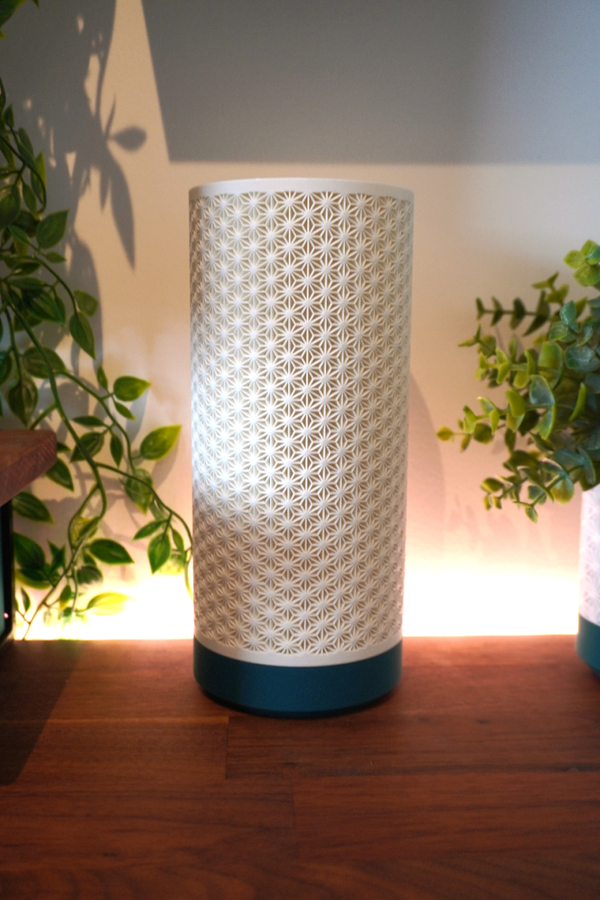 A kumiko-inspired lampshade that casts elegant geometric light while keeping the look clean and minimal. Perfect for a bedside table, shelf, or desk, it adds a warm ambient glow without visual clutter.