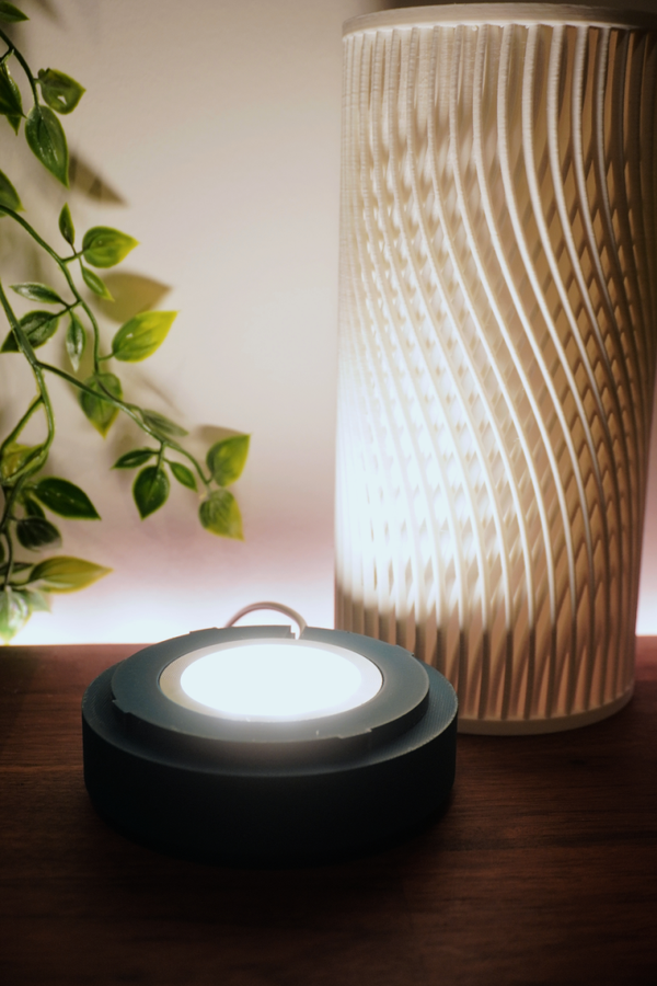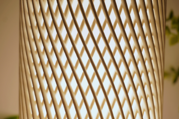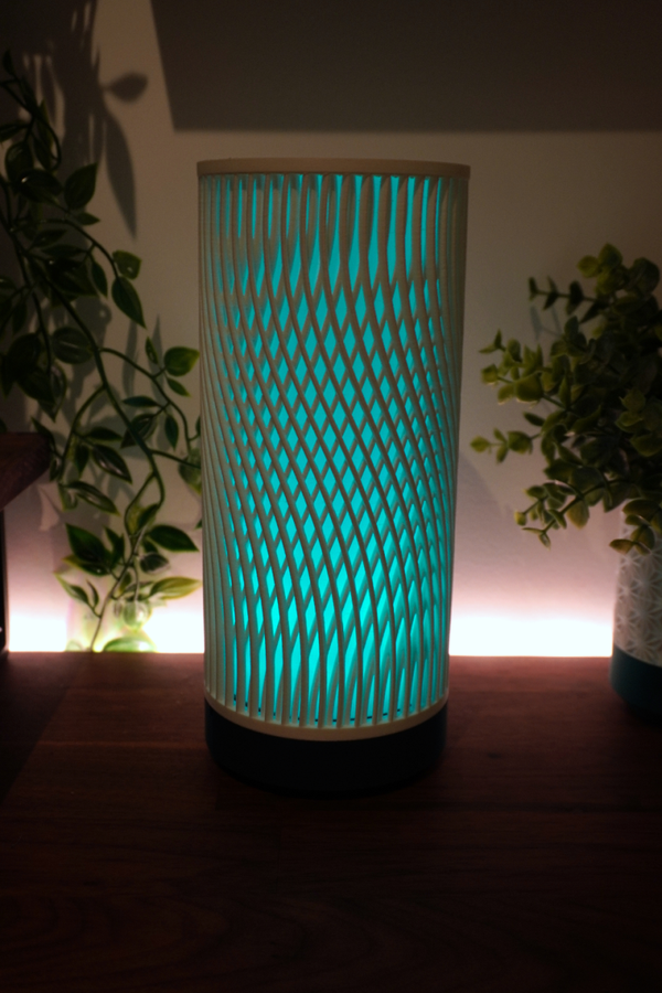 A flowing, wave-pattern lampshade that casts a soft, ambient glow. The sculptural surface catches the light like ripples or aurora bands, adding movement and warmth to a bedside table, shelf, or desk while keeping the look clean and minimal.