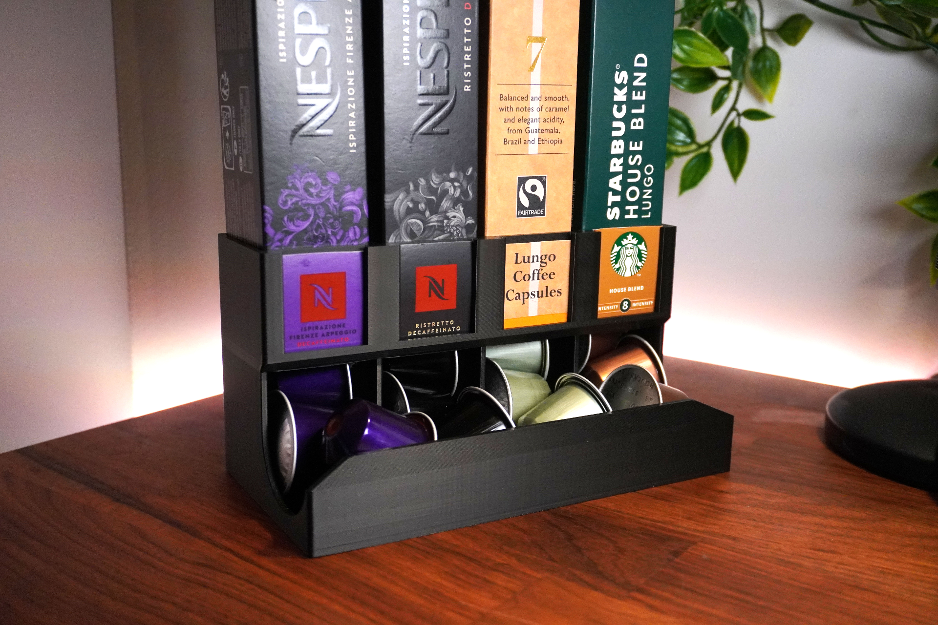 A clean, space-saving dispenser for Nespresso Original pods that keeps your coffee corner tidy and ready to brew. Load from the top and grab from the bottom for quick, one-hand access—perfect for kitchen benches, office break areas, or coffee carts.