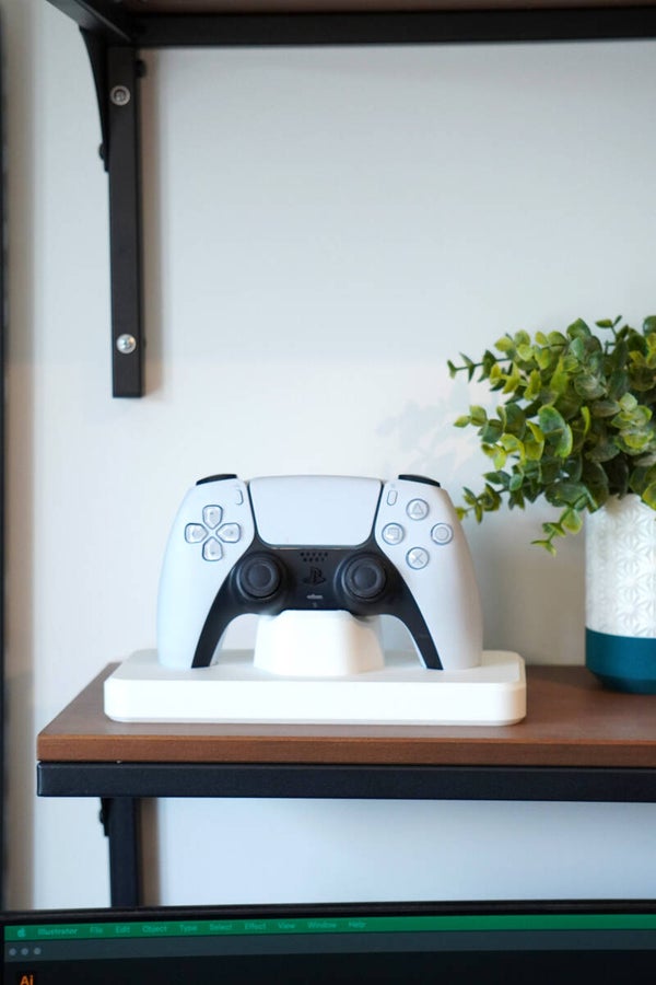 A clean perch stand that displays your PlayStation DualSense 5 controller upright and ready to grab. The compact base keeps your setup tidy on a desk or media unit, while smooth contact points protect the grips and shell.