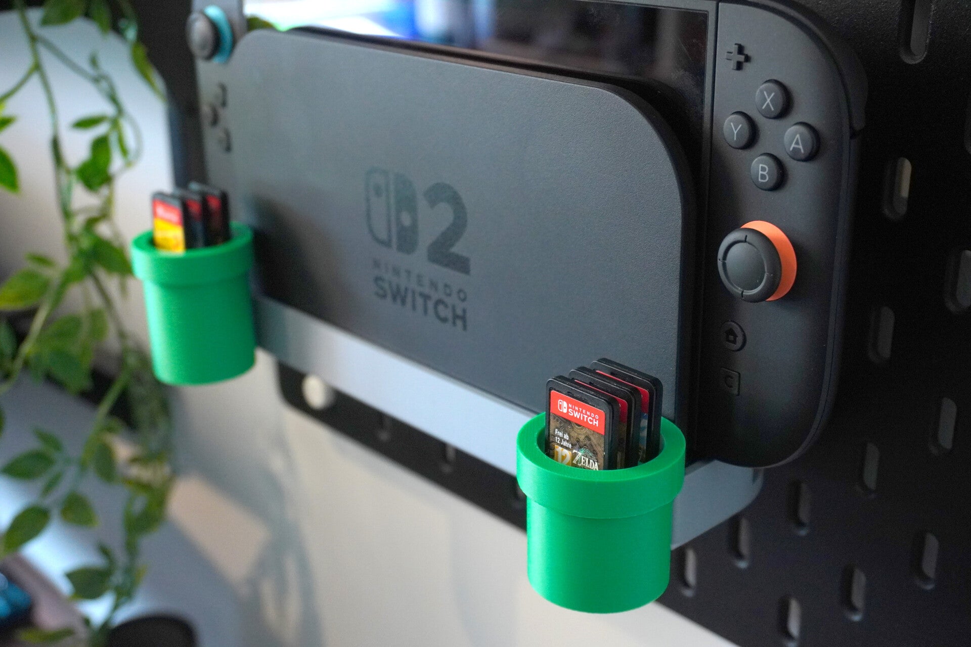 A tidy wall/pegboard mount with a playful pipe-themed front that keeps your Switch 2 dock neat, accessible, and secure. Perfect for desks, media units, or a Skadis pegboard setup, it organises your gaming spot while keeping cables out of sight.