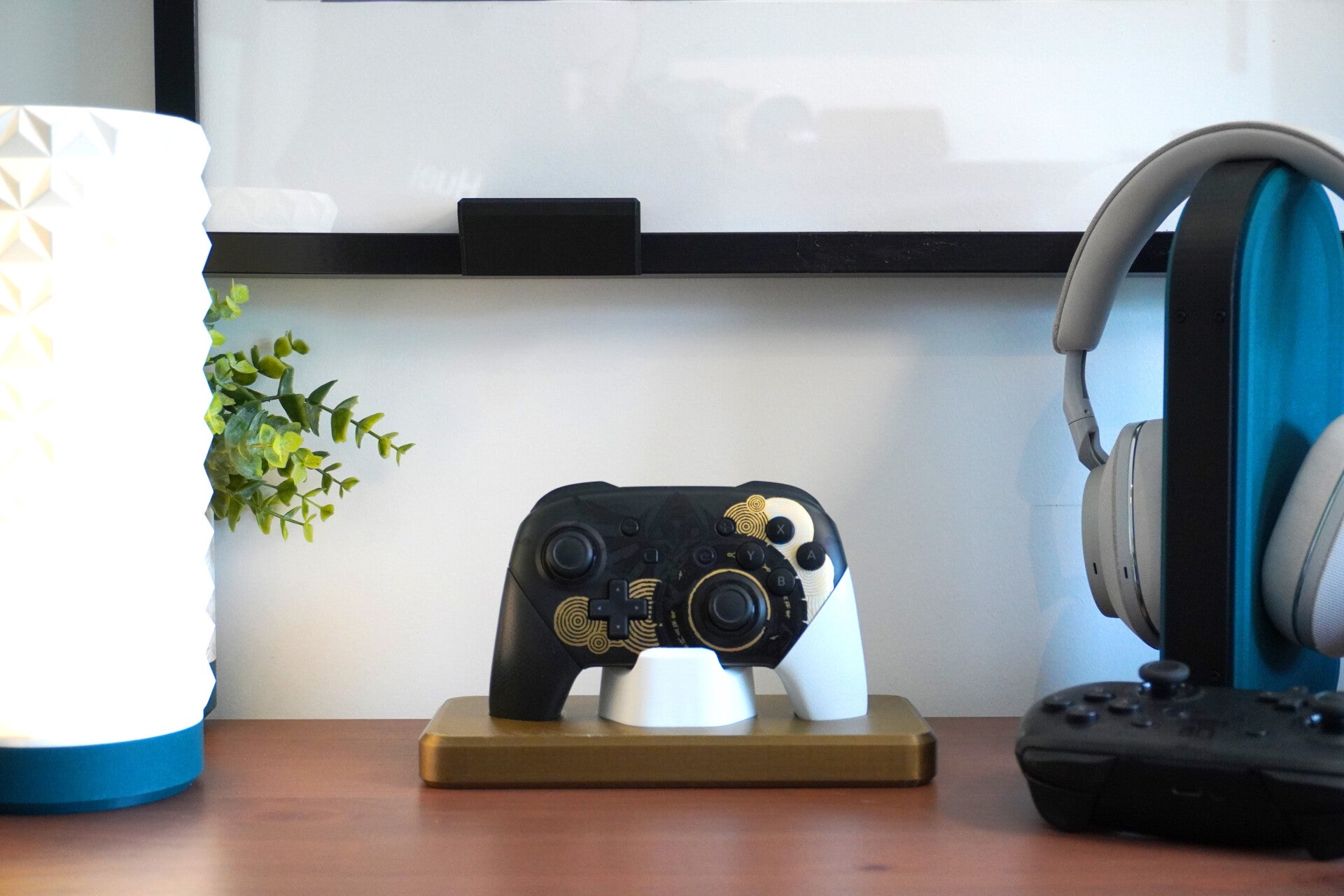 A clean perch stand that displays your Nintendo Switch Pro Controller upright and ready to grab. The compact base keeps your setup tidy on a desk or media unit, while smooth contact points protect the grips and shell.