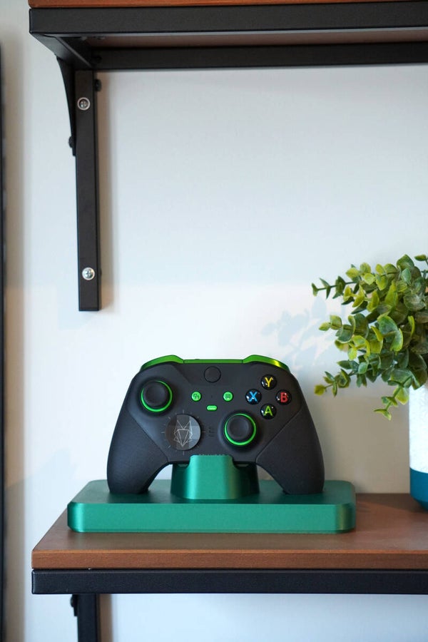 A clean perch stand that displays your Xbox Series S/X or Elite controller upright and ready to grab. The compact base keeps your setup tidy on a desk or media unit, while smooth contact points protect the grips and shell.
