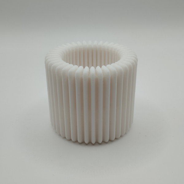 A beautifully ribbed, modern-style tealight holder that lends subtle elegance to any space. Designed to accommodate standard tea lights up to 40 mm in diameter.
