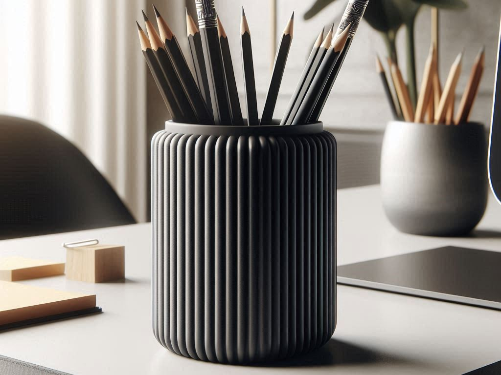 A sleek, ribbed organiser designed for holding pencils, pens, or toothbrushes and other bathroom or desk accessories. Clean and modern, it brings tidy functionality to any space.