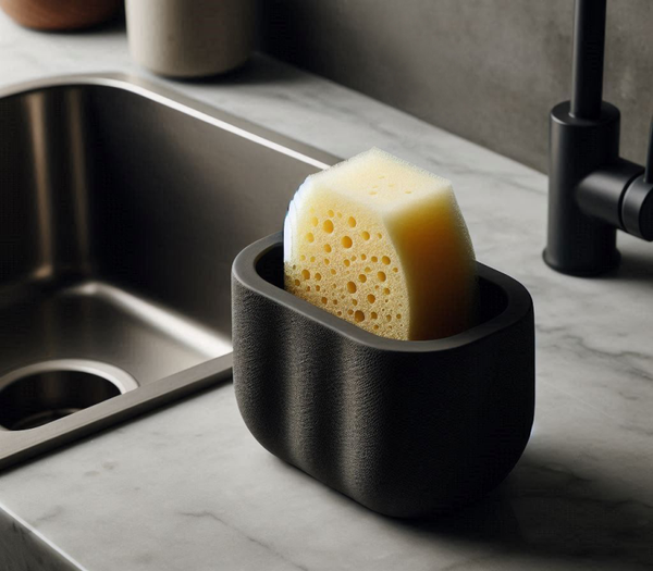 A contemporary sponge cup with a cosy, fuzzy-skin finish, offering a clean and stylish way to keep your kitchen sponge upright, dry, and close at hand.