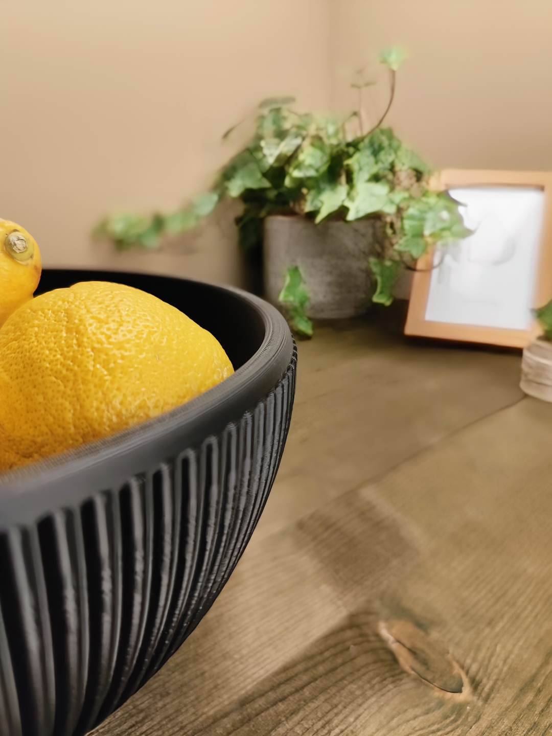 A timeless, ribbed bowl with 120 elegant exterior ribs that give it refined texture and contemporary charm. Its balanced design makes it a stunning display piece—perfect for fruit, keys, or as a stylish decorative accent.