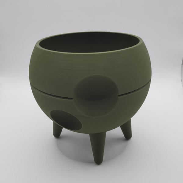 A striking mid-century modern planter with a spacious form that gives off a “just landed” design vibe—perfect as a bold statement piece for your plants.