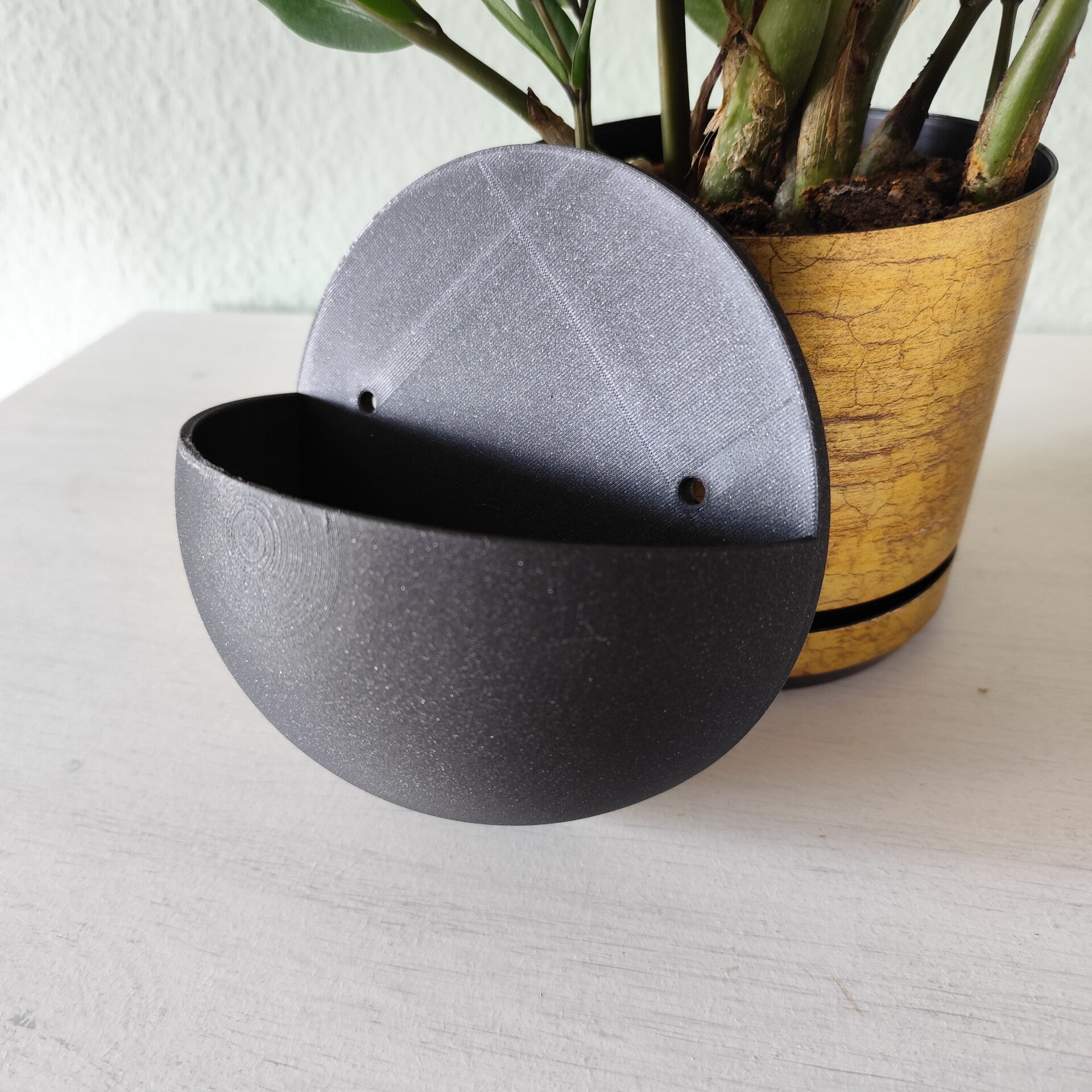 A modern, spherical planter designed for wall display. With a clean, contemporary look, it's ideal for adding a touch of greenery to kitchens, living areas, or workspaces. It mounts securely via two rear 6 mm anchor holes—or can be affixed using double‑sided adhesive tape for easy installation.