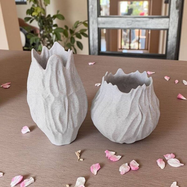 This duo looks like two stones from another planet. Once printed, the two vases fill any room with an atmosphere that is subtle yet guaranteed to catch the eye.