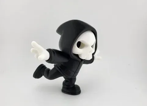 A stylile skull action figure with a dynamic / urban aesthetic, perfect for Halloween décor or display.