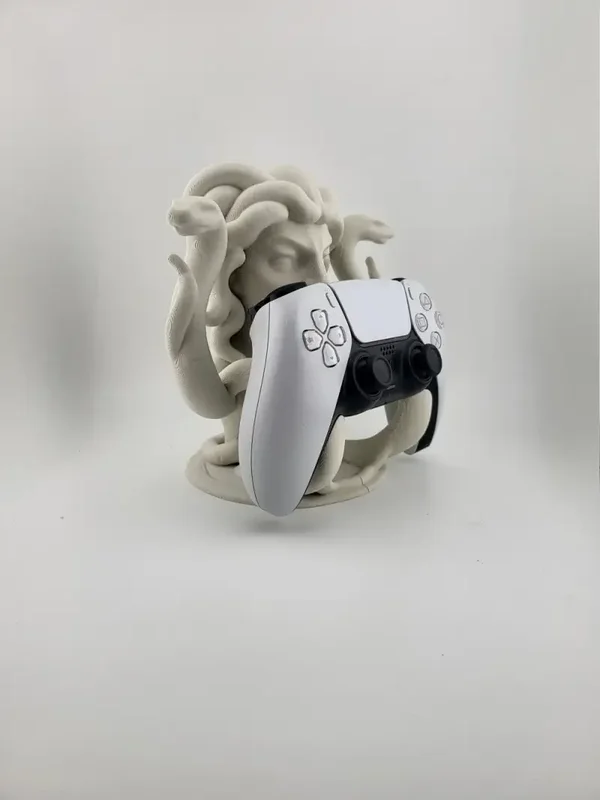 A striking Medusa-inspired controller stand featuring snake motifs entwined around a face, elegantly holding your PlayStation controller with style.