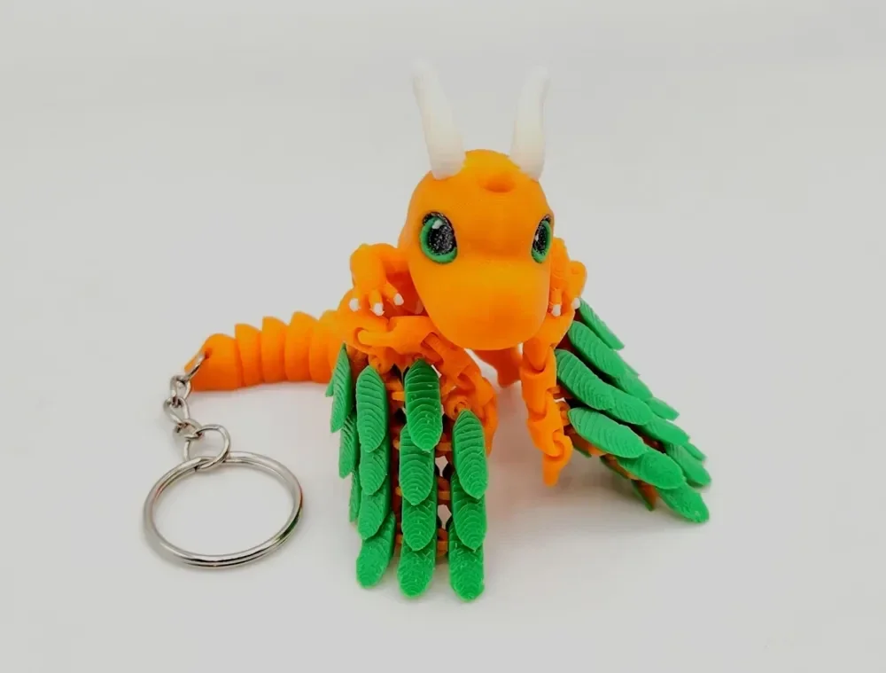 A tiny, fully articulated Baby Charizard with flexi wings and body, designed to function as both a fidgetable toy and a keychain accessory.