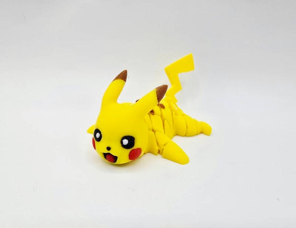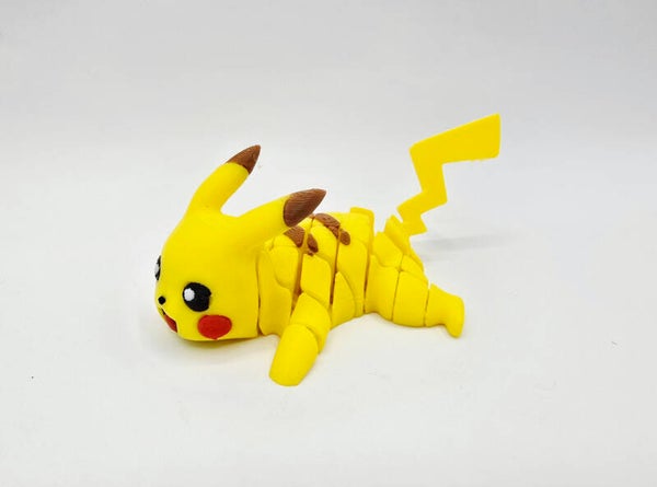 A flexible 3D-printed Pikachu with articulated body parts, perfect as a playful collectable or gift for Pokémon fans.
