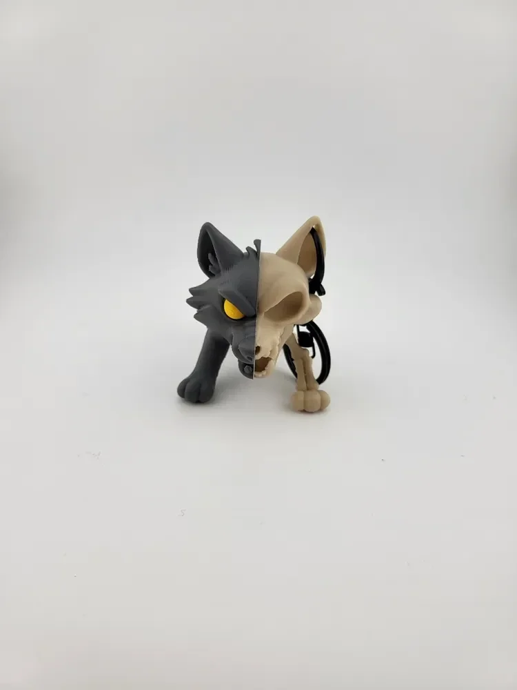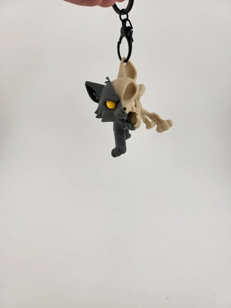 A kawaii wolf skeleton keychain — spooky and cute accessory for pets, bags, or keys.