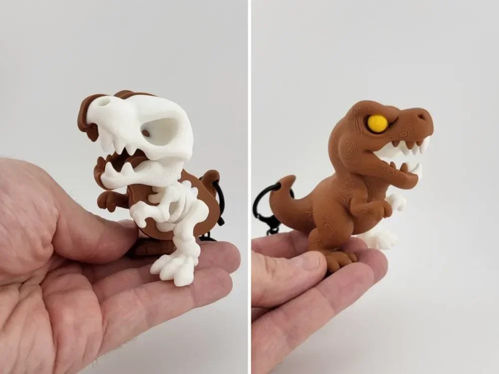 A kawaii T-Rex skeleton keychain — cute, edgy, and perfect for bag or key adornment.