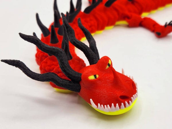 A large, detailed 3D-printed dragon inspired by “How to Train Your Dragon,” featuring articulated body and wings for display and play.