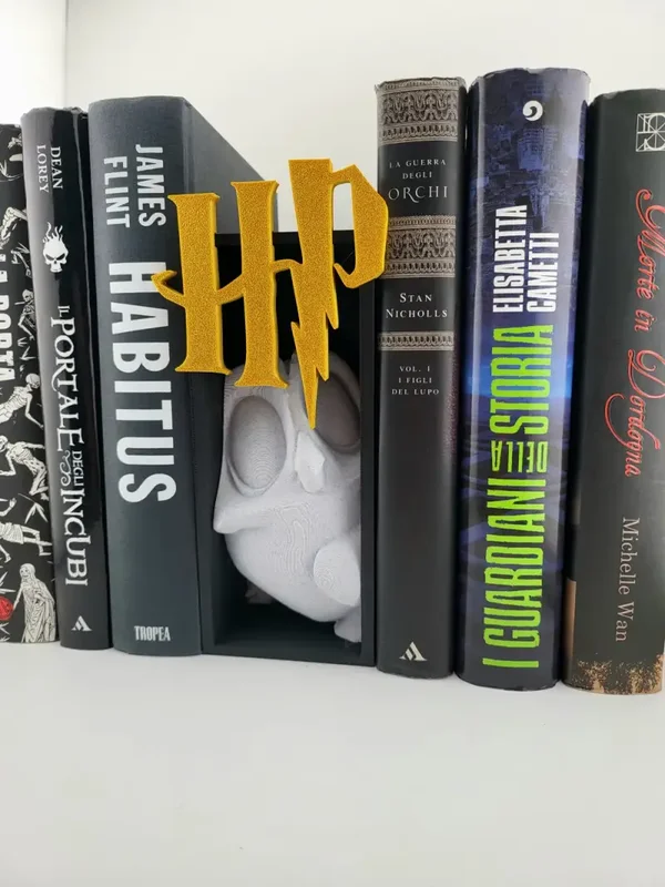 A charming bookshelf insert featuring Edvige (Hedwig), peering out from between books — perfect for fans of magical decor and wizarding world displays.
