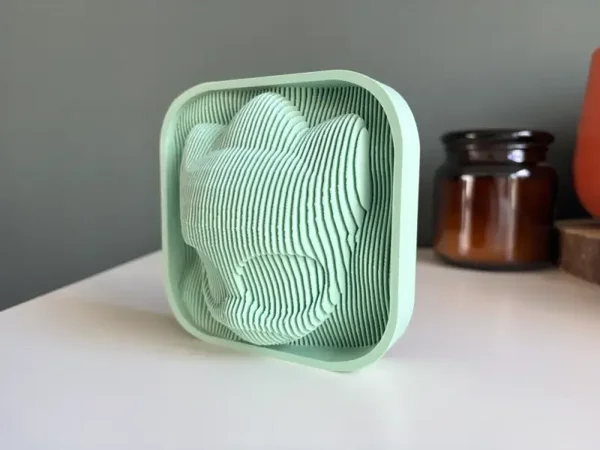 This striking layered sculpture is a 3D artwork depicting Ollie, the enigmatic brawler from Brawl Stars. Printed in multiple stacked layers, it masterfully captures his distinctive mask and elusive demeanor.